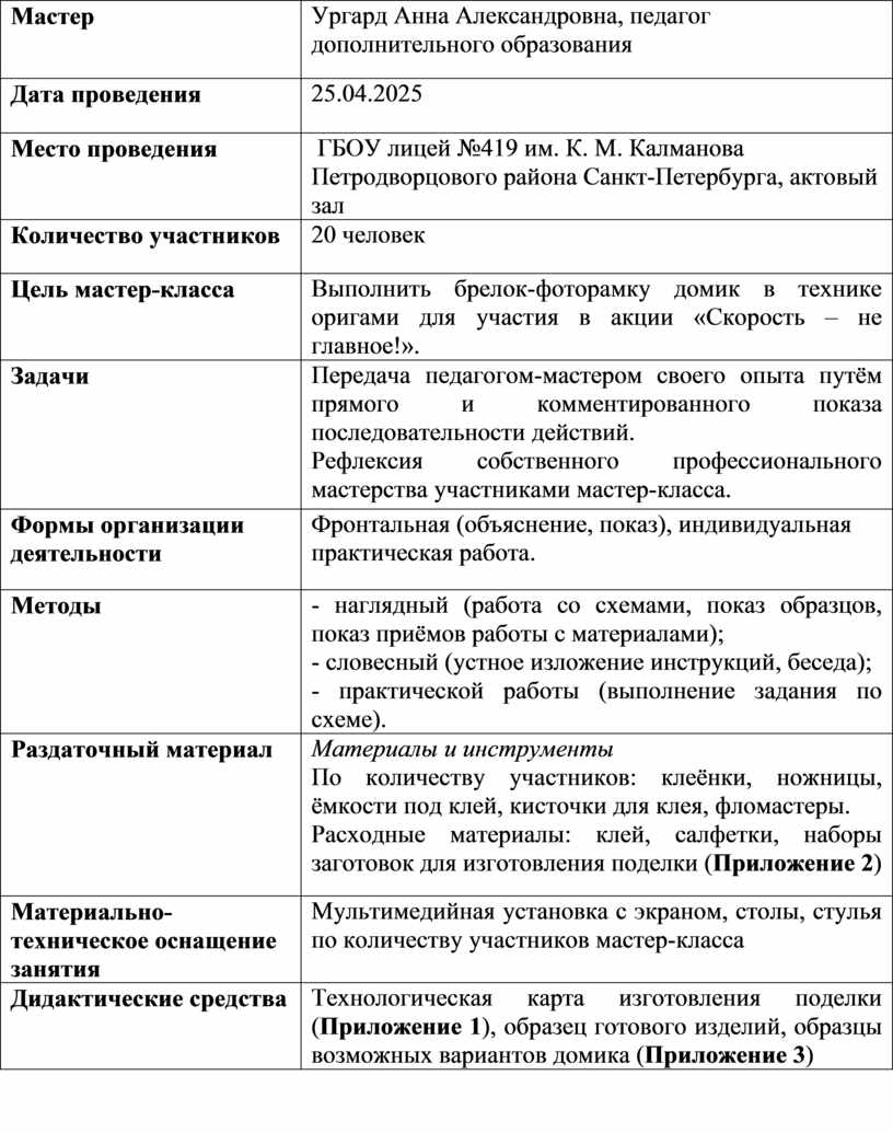 В перспективе предполагается предложить материал мастер-класса организаторам Акции «Скорость — не главное!» в Петродворцовом районе включить фоторамку-брелок Домик как рекомендуемый образец в положение данного мероприятия