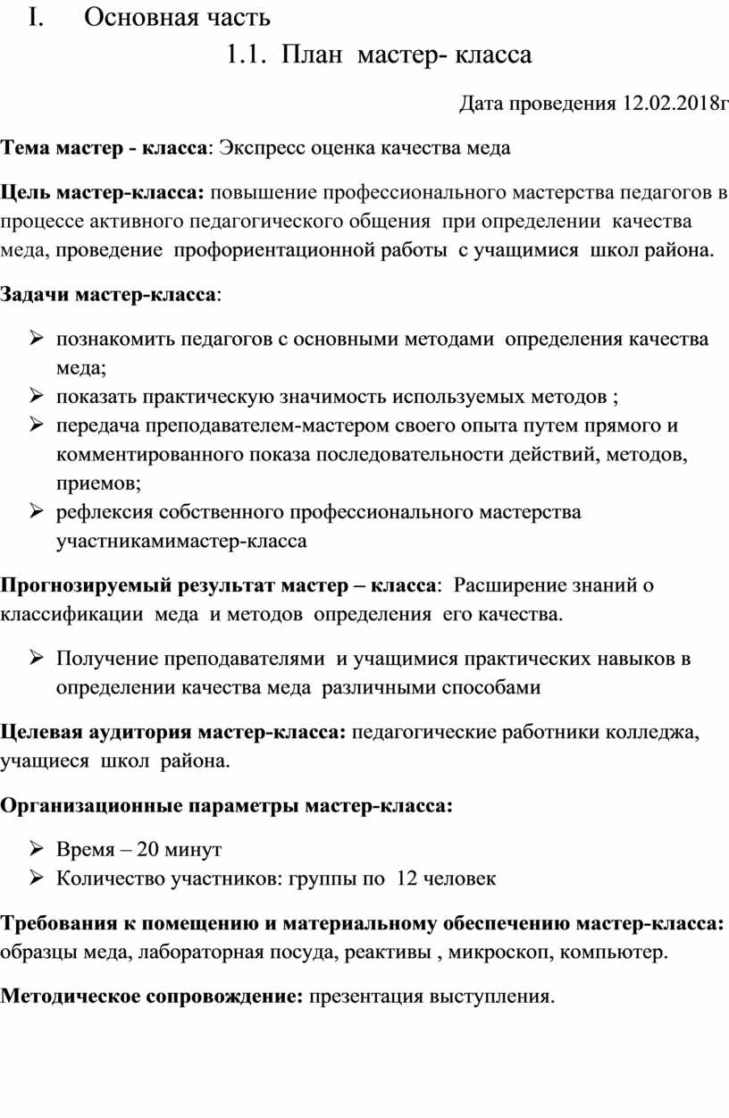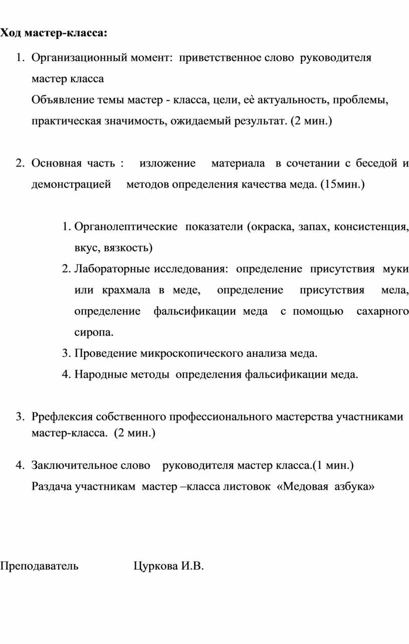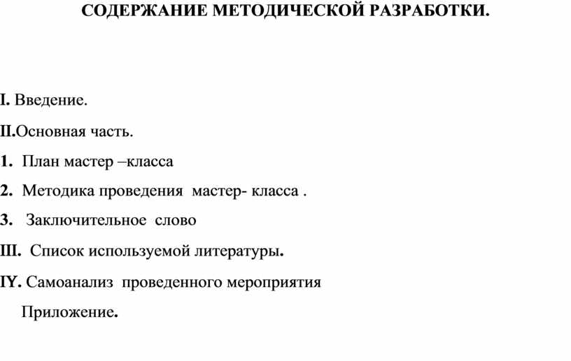 В методической разработке раскрывается последовательность проведения мастер класса, изучение запланированных вопросов.