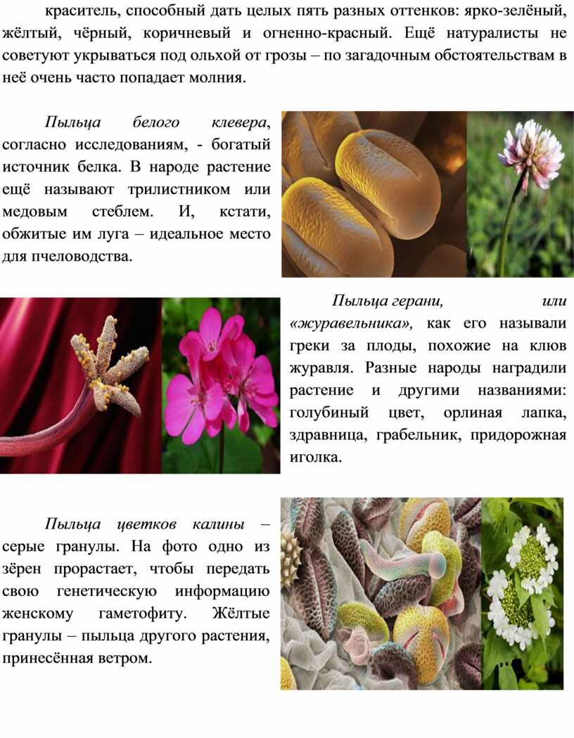 Пыльца цветков калины – серые гранулы. На фото одно из зёрен прорастает, чтобы передать свою генетическую информацию женскому гаметофиту. Жёлтые гранулы – пыльца другого растения, принесённая ветром.