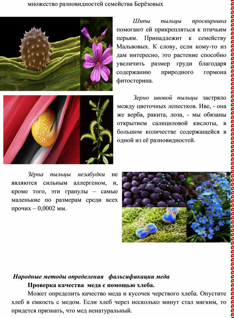 Шипы пыльцы просвирника помогают ей прикрепляться к птичьим перьям. Принадлежит к семейству Мальвовых. К слову, если кому-то из дам интересно, это растение способно увеличить размер груди благодаря содержанию природного гормона фитостерина.
