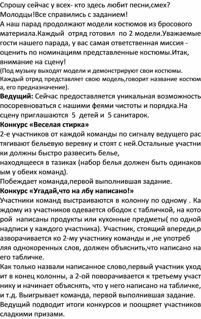 Ведущий: Сейчас предоставляется уникальная возможность посоревноваться с нашими феями чистоты и порядка.На