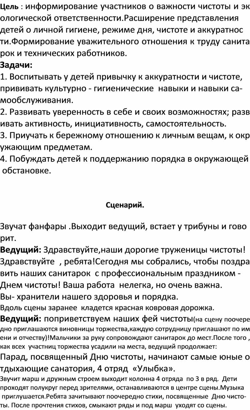 Цель : информирование участников о важности чистоты и экологической ответственности.Расширение представления