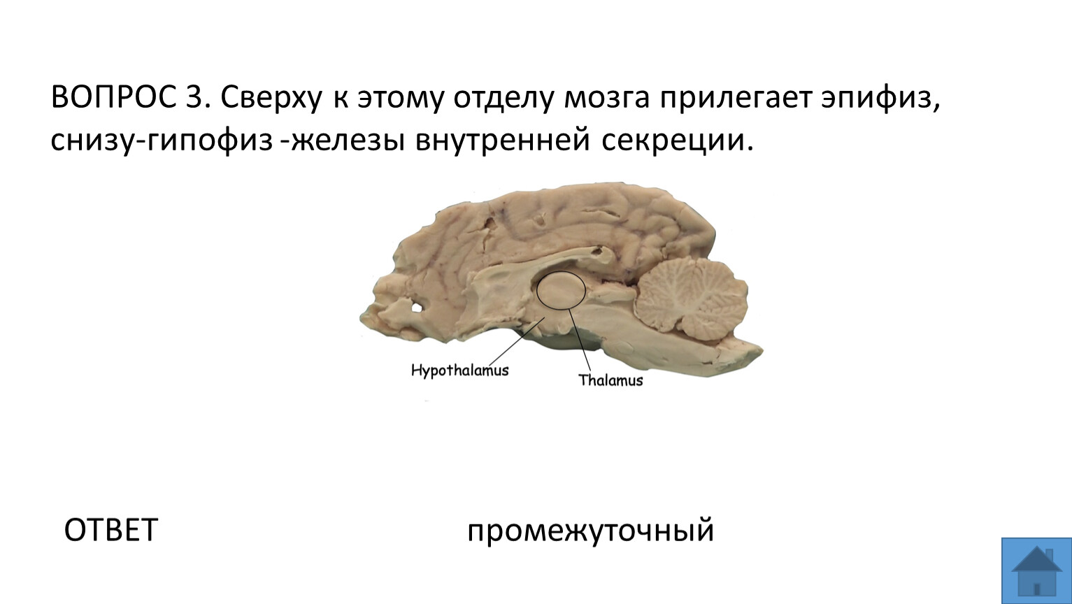 ВОПРОС 3. Сверху к этому отделу мозга прилегает эпифиз, снизу-гипофиз -железы внутренней секреции.