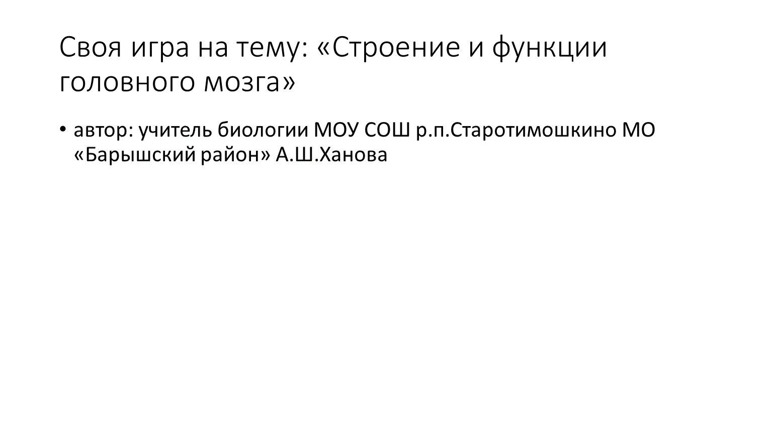 автор: учитель биологии МОУ СОШ р.п.Старотимошкино МО «Барышский район» А.Ш.Ханова