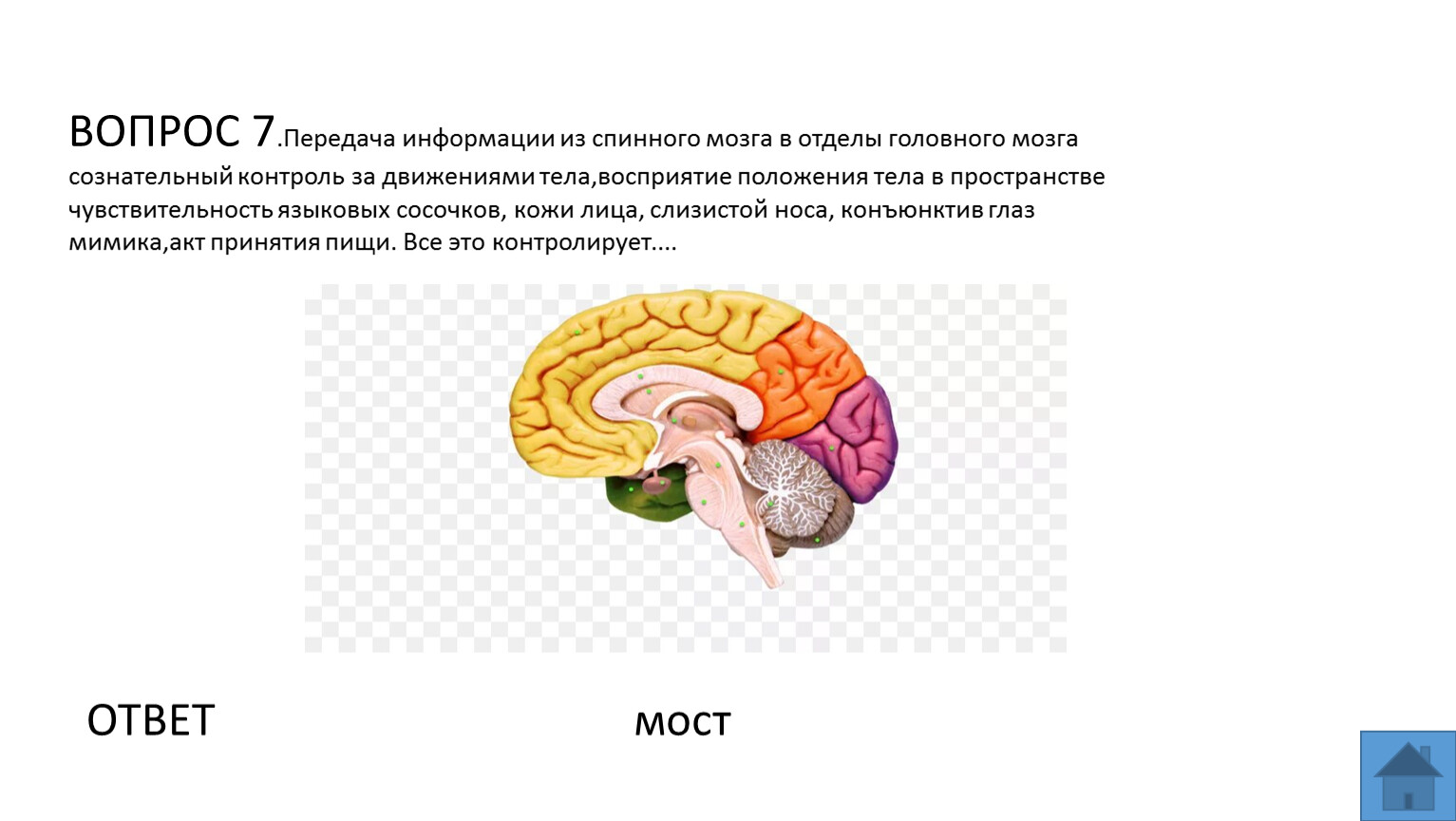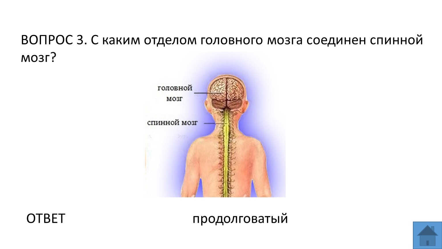 ВОПРОС 3. С каким отделом головного мозга соединен спинной мозг?