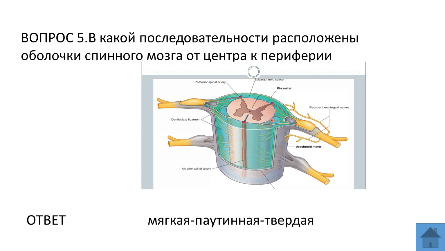 ВОПРОС 5.В какой последовательности расположены оболочки спинного мозга от центра к периферии