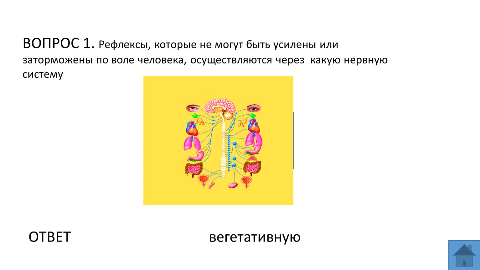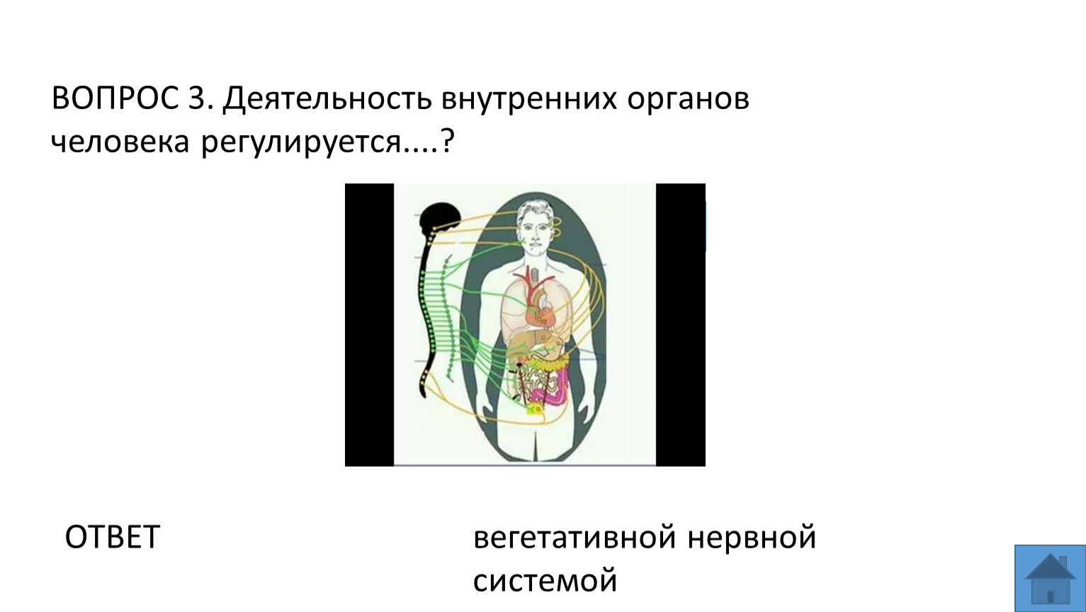 ВОПРОС 3. Деятельность внутренних органов человека регулируется....?
