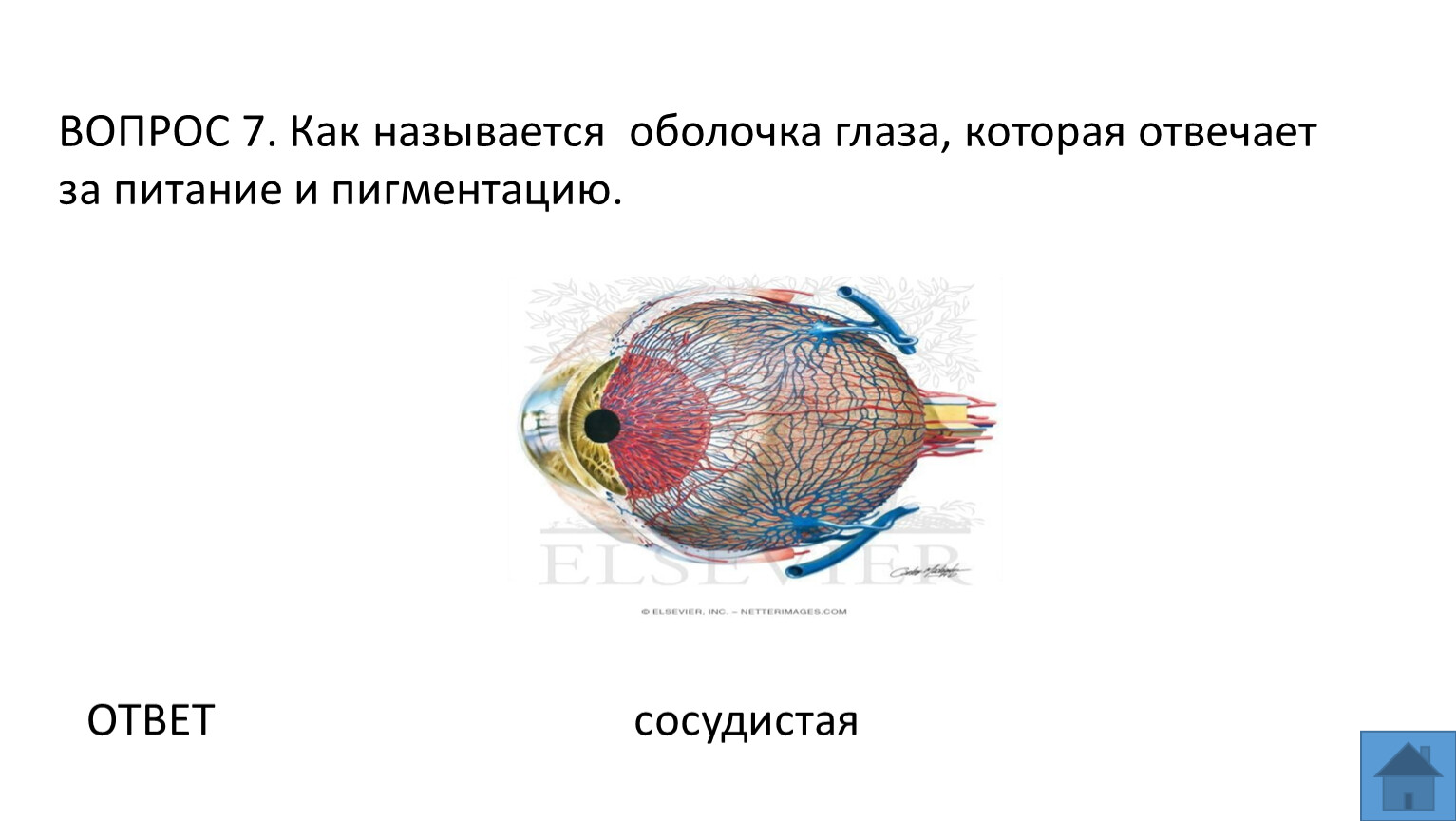 ВОПРОС 7. Как называется оболочка глаза, которая отвечает за питание и пигментацию.