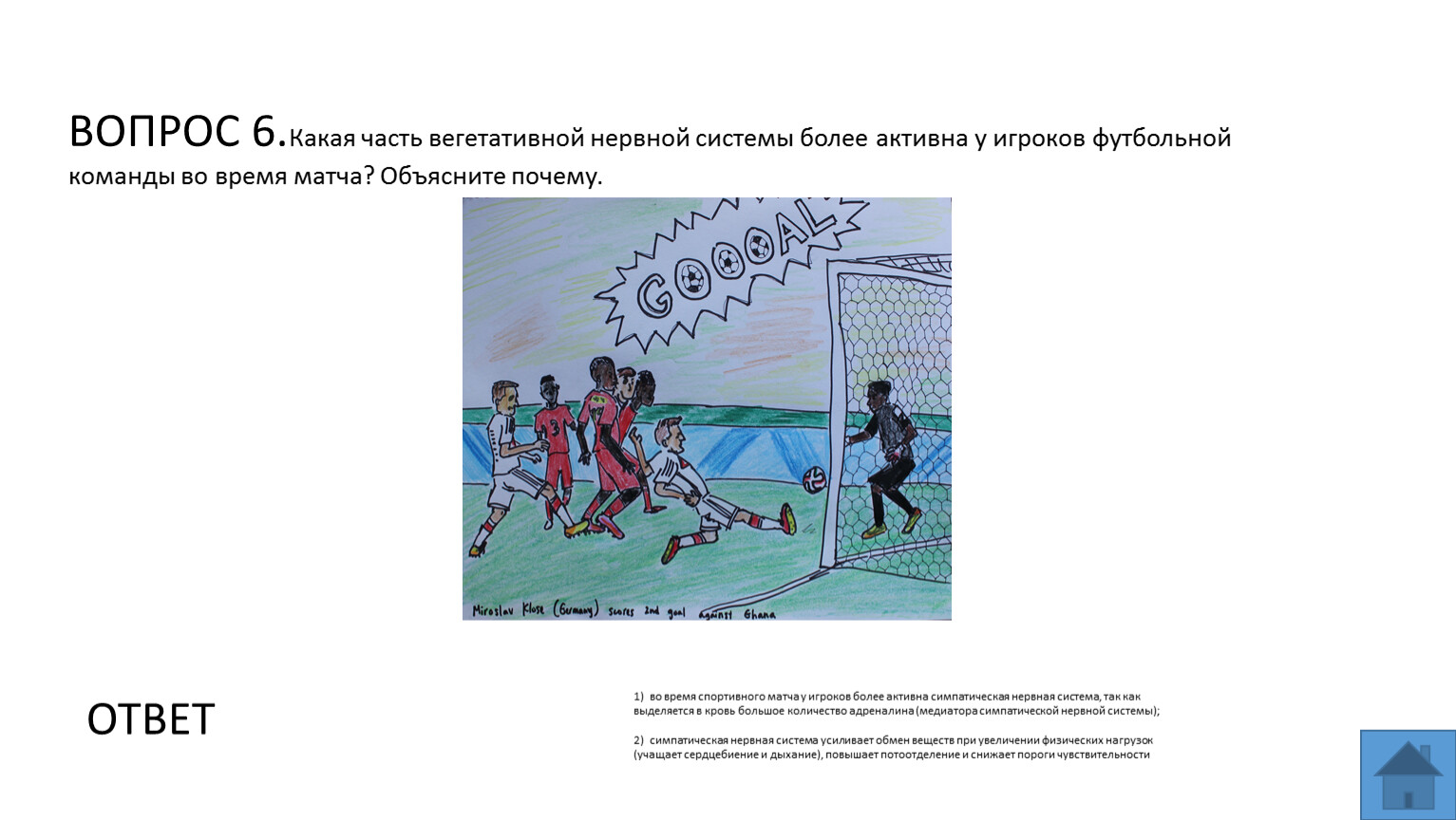 ВОПРОС 6.Какая часть вегетативной нервной системы более активна у игроков футбольной команды во время матча? Объясните почему.