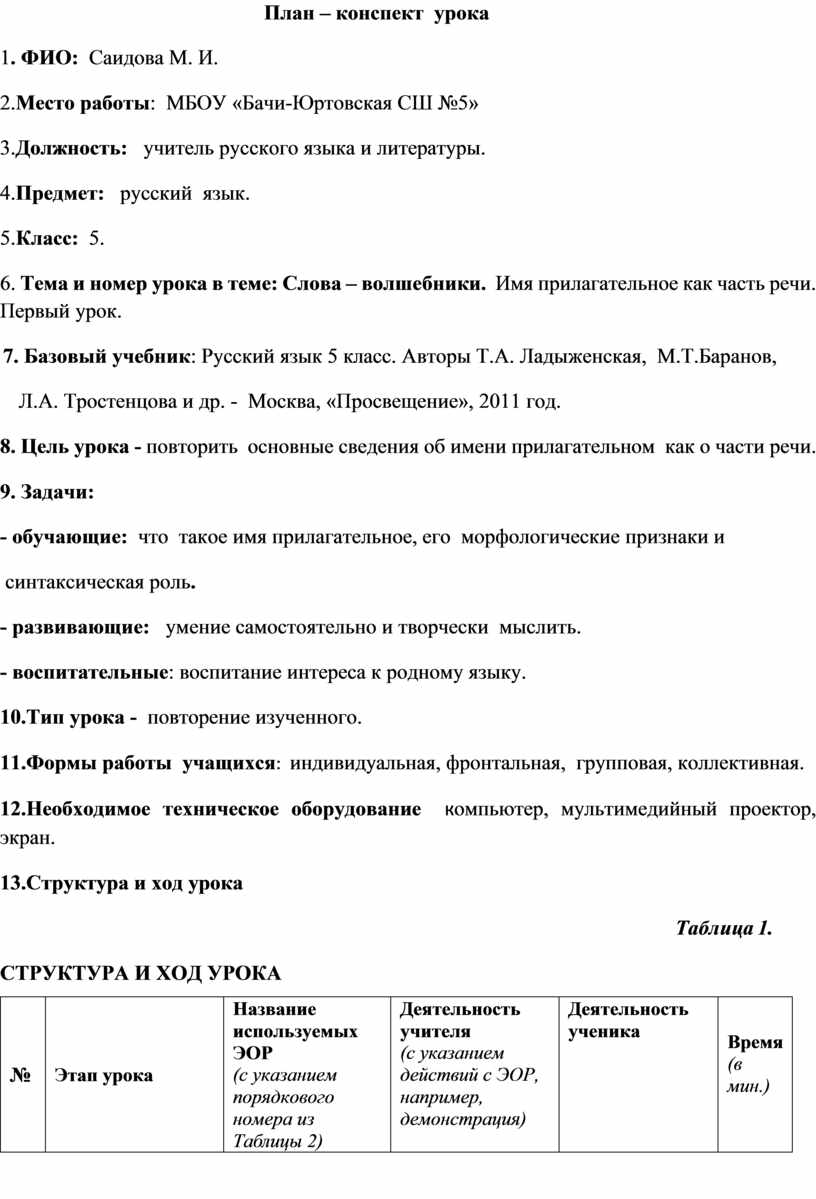6. Тема и номер урока в теме: Слова – волшебники. Имя прилагательное как часть речи. Первый урок.