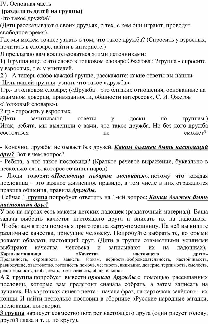 материал). Ваша задача выбрать качества настоящего друга и вписать их на