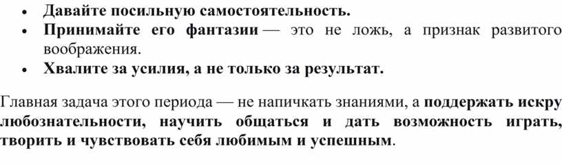 Главная задача этого периода — не напичкать знаниями, а поддержать