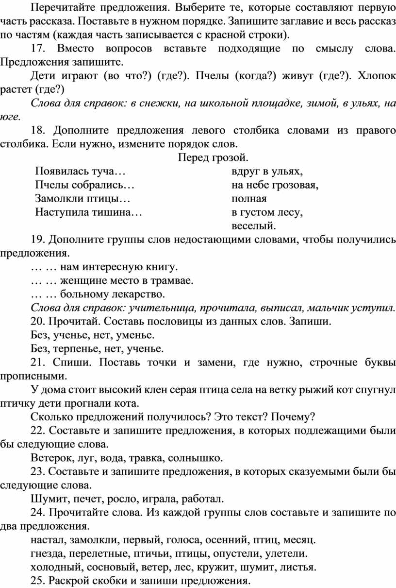 24. Прочитайте слова. Из каждой группы слов составьте и запишите по два предложения.
