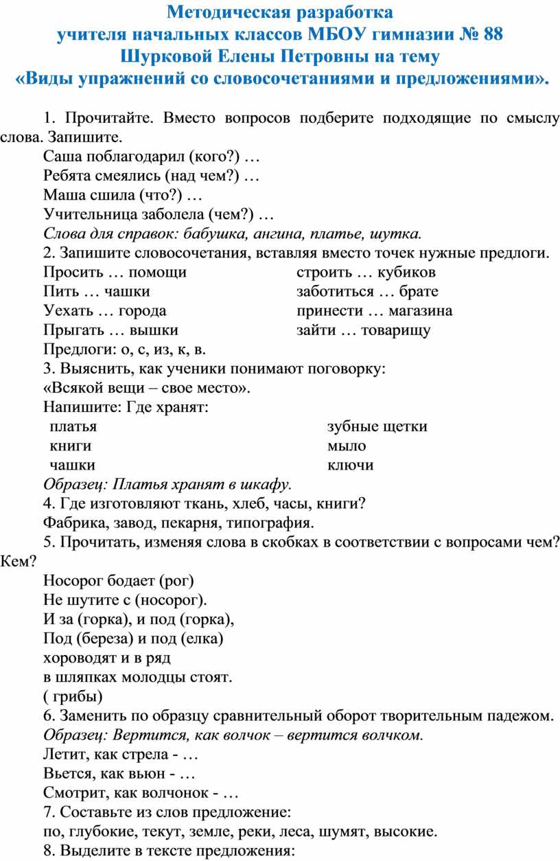 2. Запишите словосочетания, вставляя вместо точек нужные предлоги.