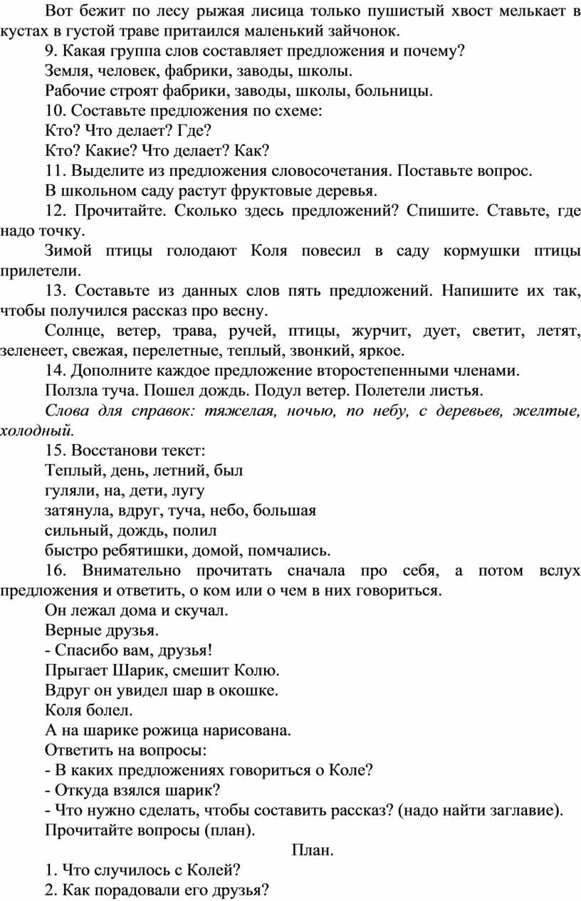 9. Какая группа слов составляет предложения и почему?