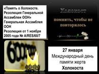 - международному дню памяти жертв Холокоста, освобождение лагеря смерти Аушвица (Освенцима) (Польша) войсками Красной армии (27 января 1945 года).