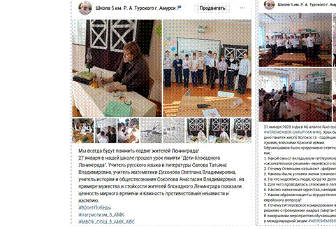 С целью сохранения исторической правды и памяти, а также формирования нравственно верных ориентиров обучающихся разработана и реализуется неделя памяти «Мы помним!» Приложение 1 (план недели памяти «Мы помним»).