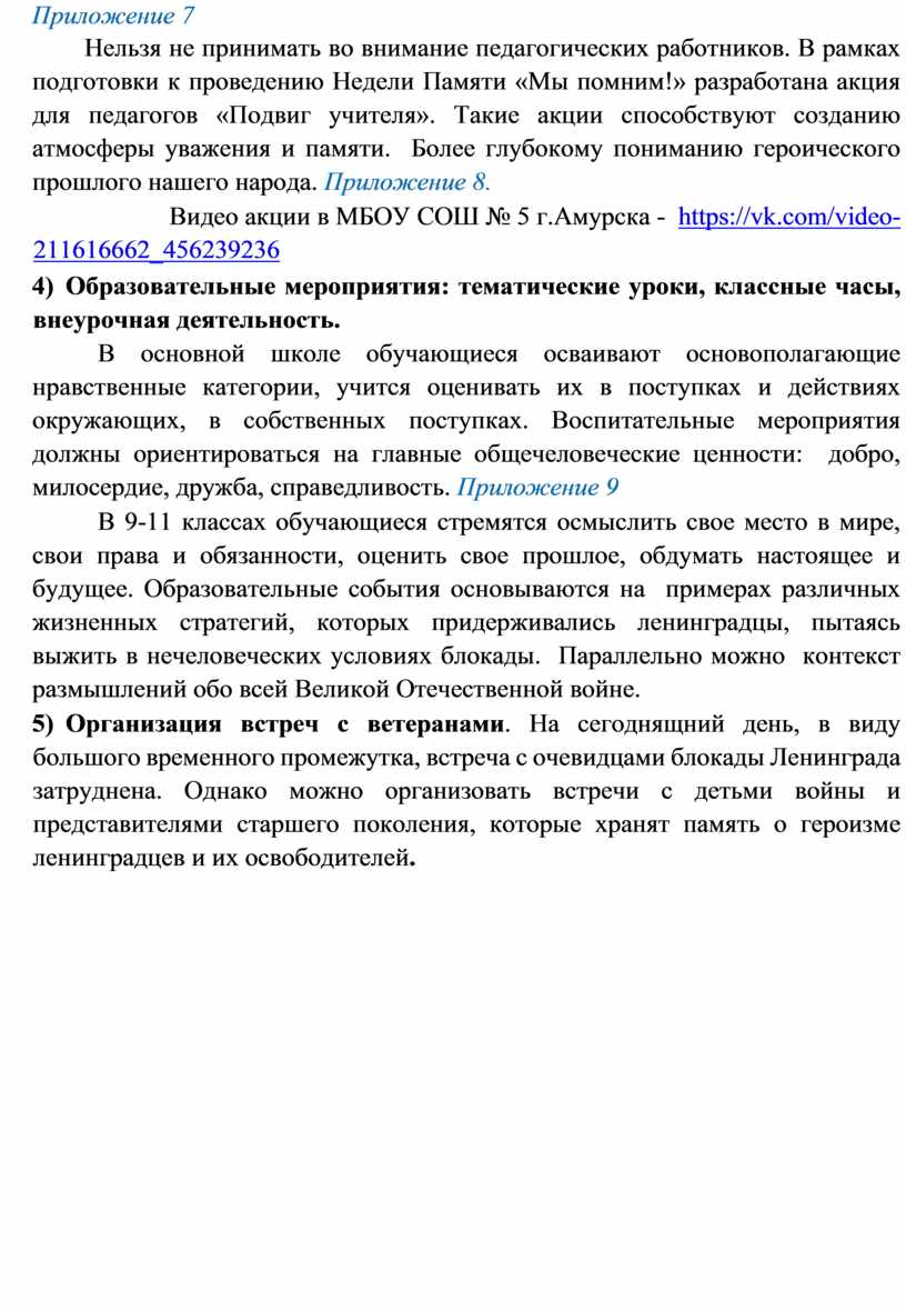 3. Увековечить память о жертвах блокады Ленинграда и Холокоста посредством воспитательных мероприятий.