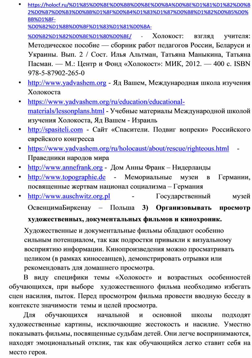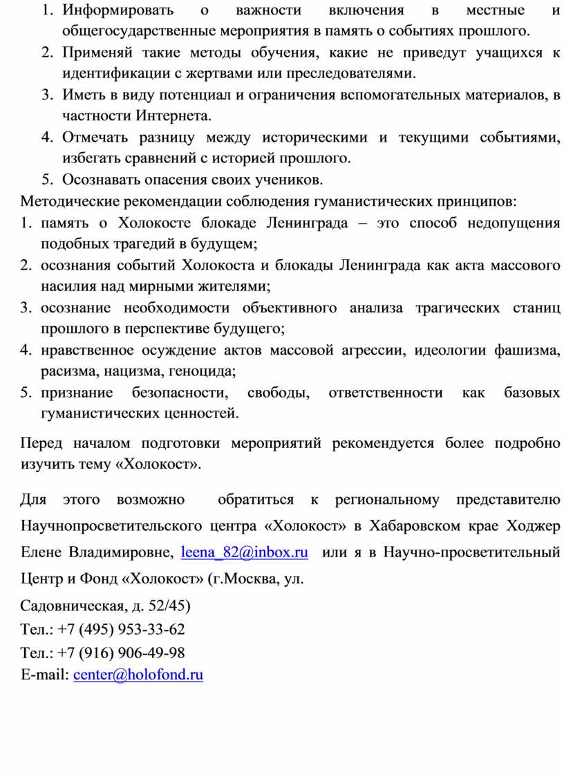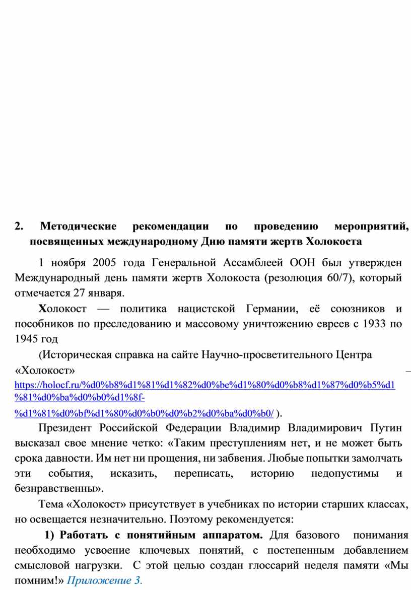 2. Методические рекомендации по проведению мероприятий, посвященных международному Дню памяти жертв Холокоста 9