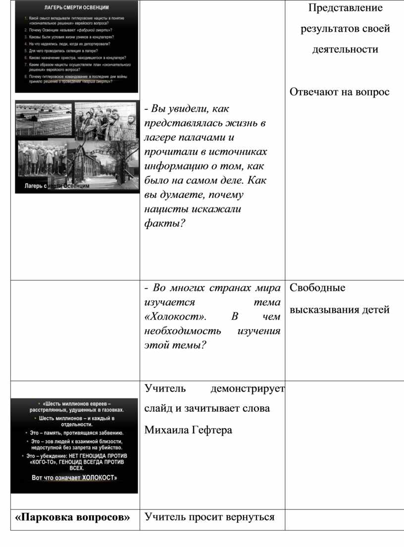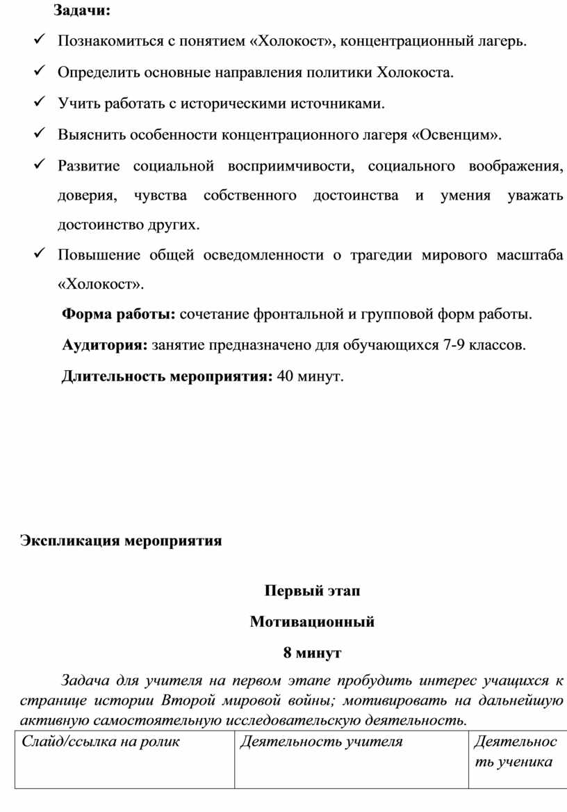 1. Повышение уровня информированности учащихся о трагических эпизодах отечественной и всемирной истории.