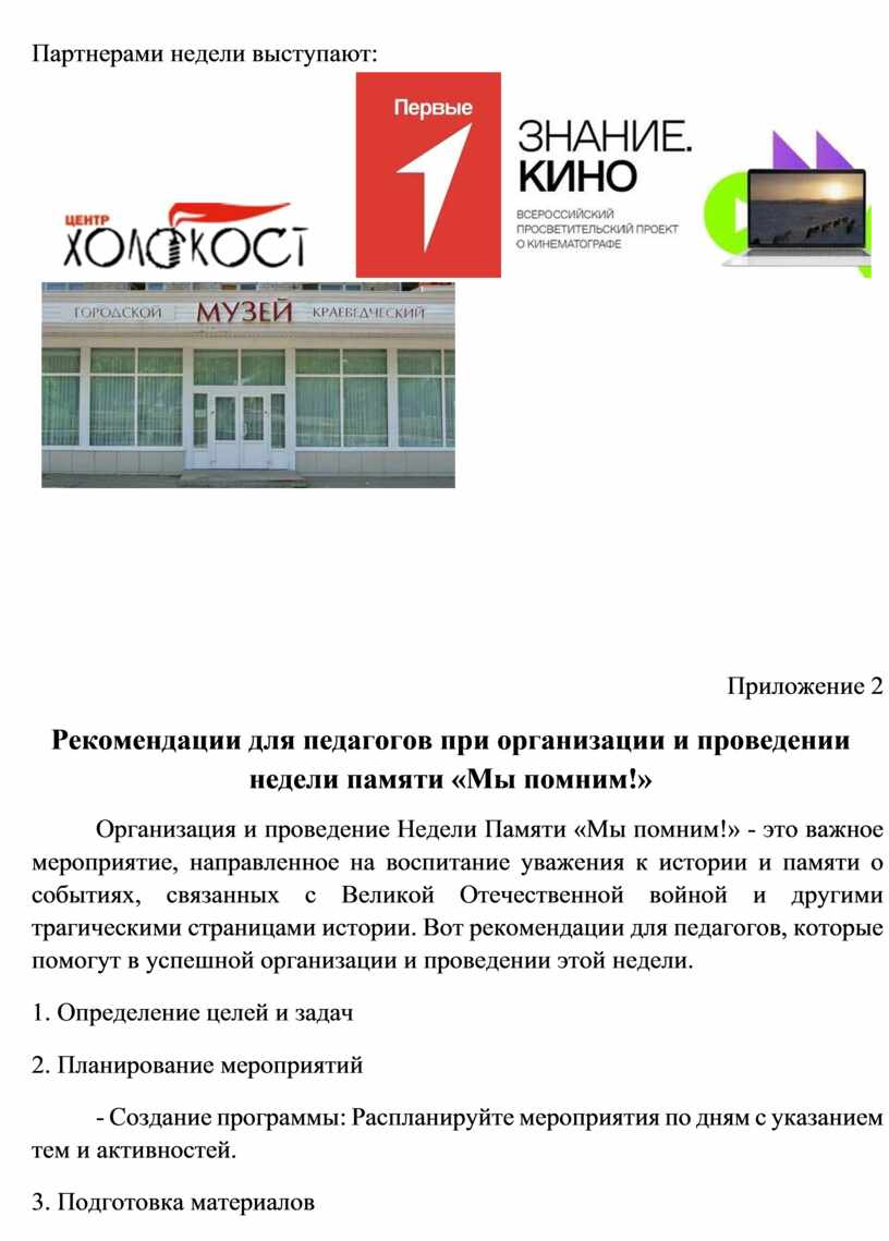 Недели Памяти «Мы помним!» важно придерживаться рекомендаций гуманистически-нравственных позиций. Приложение 2