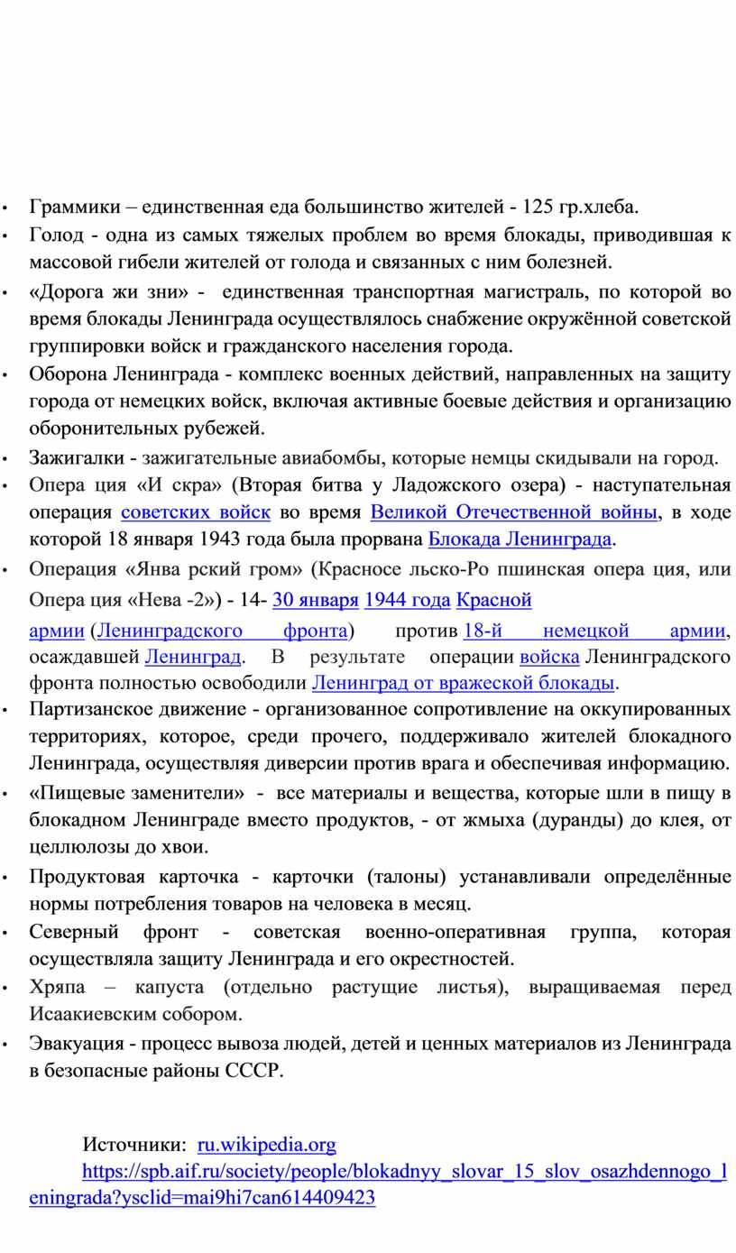 - дню полного освобождения города Ленинграда от фашистской блокады (27 января1944 года).