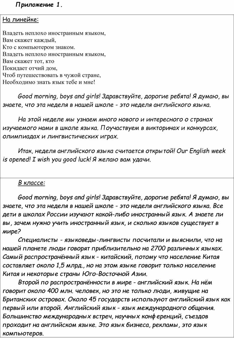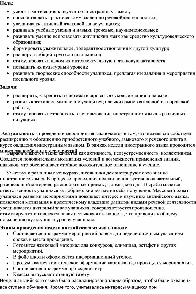 Этапы проведения недели английского языка в школе