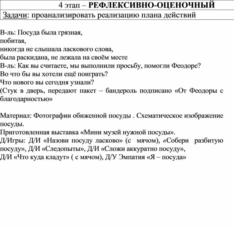 Задачи: Составить план действий - как вернуть посуду. Дети - отвечают на вопрос; воспитатель - выставляет картинки. |