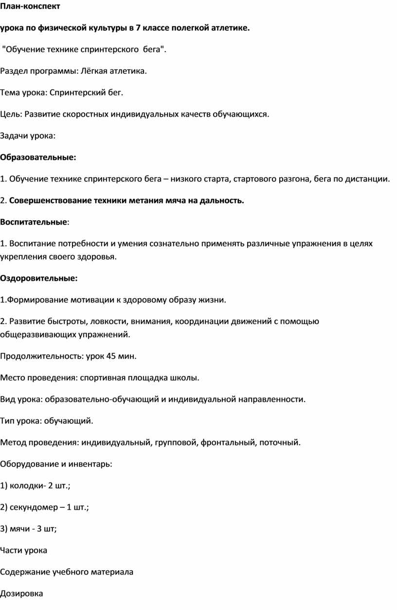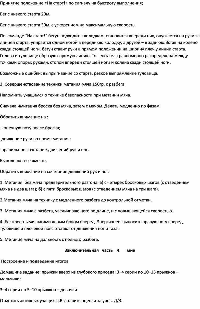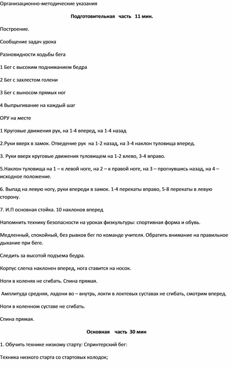 1. Обучение технике спринтерского бега – низкого старта, стартового разгона, бега по дистанции.
