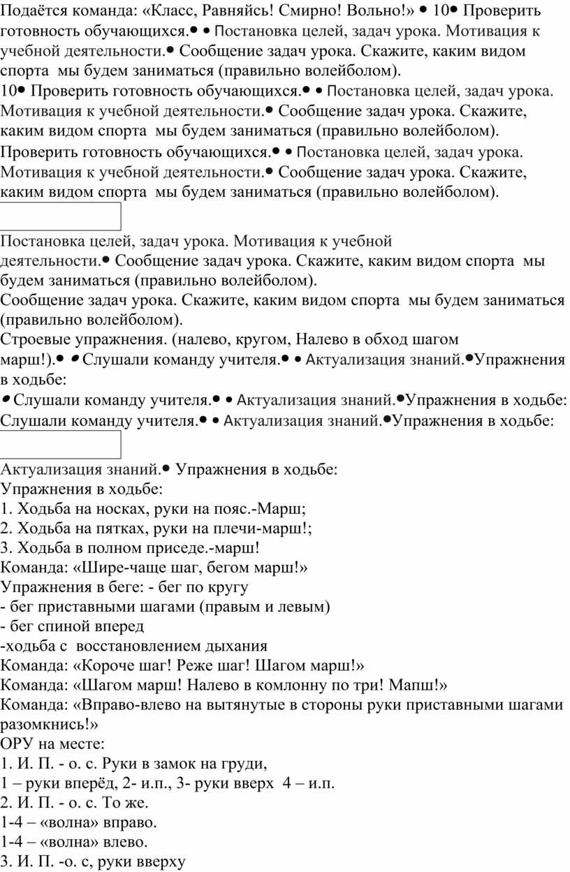 Сообщение задач урока. Скажите, каким видом спорта мы будем заниматься (правильно волейболом). Строевые упражнения. (налево, кругом, Налево в обход шагом марш!). |