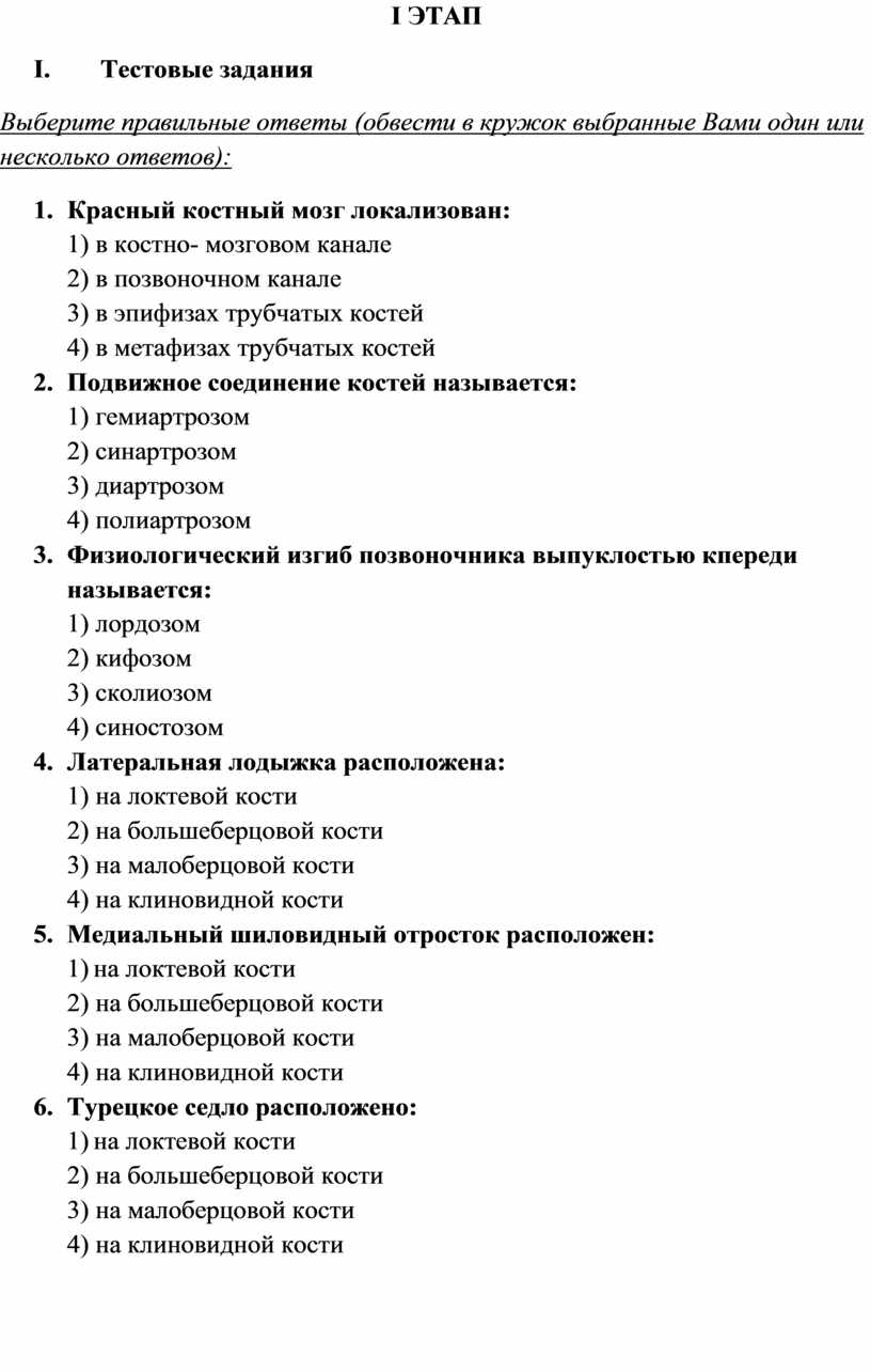 1.5. Олимпиада проводится по разделам и темам дисциплины «Анатомия и физиология человека». Задания олимпиады выбираются согласно пройденного материала на момент проведения олимпиады и включает в себя следующие этапы: