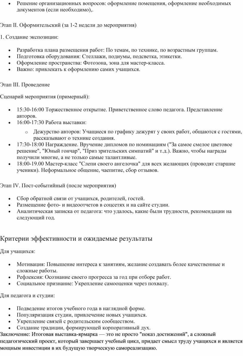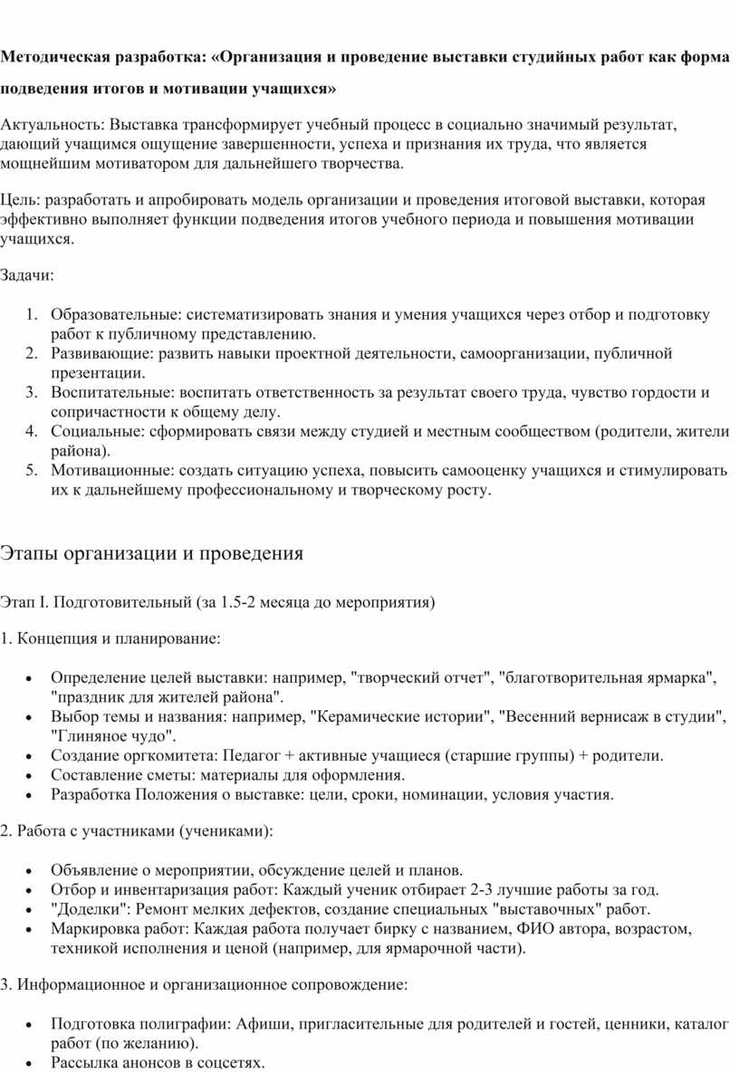 разработка: «Организация и проведение выставки студийных работ как форма