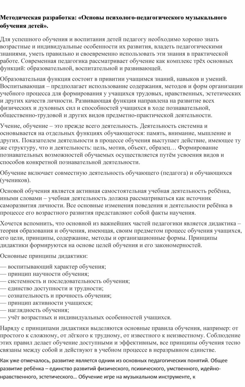 Методическая разработка: «Основы психолого-педагогического музыкального обучения детей».