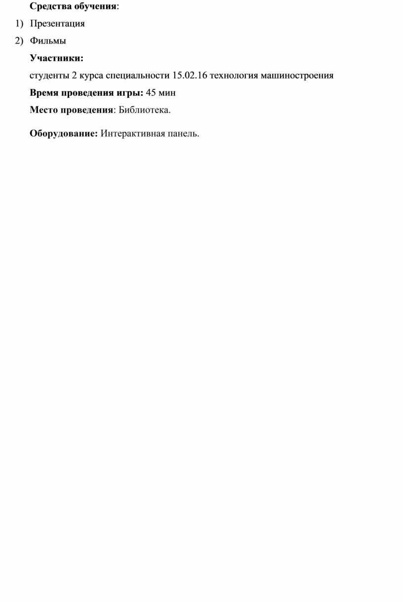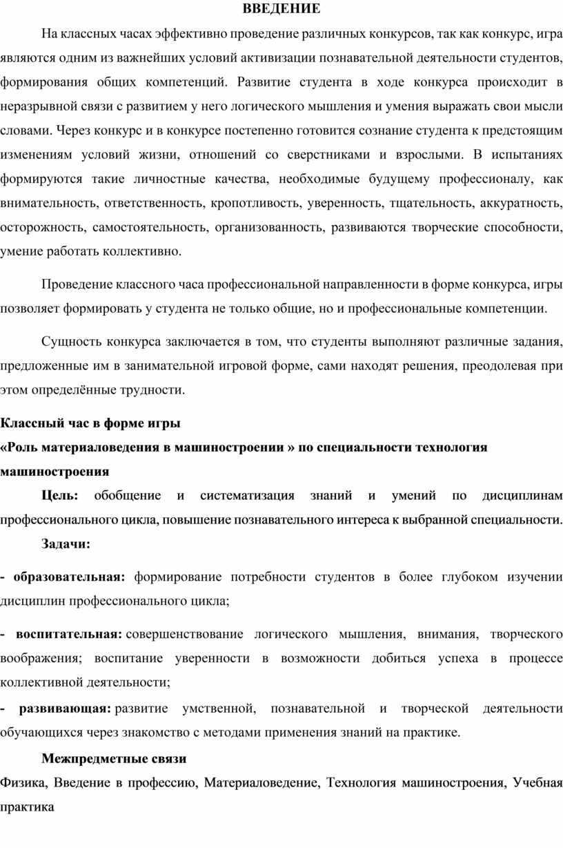 Проведение классного часа профессиональной направленности в форме конкурса, игры позволяет формировать у студента не только общие, но и профессиональные компетенции.