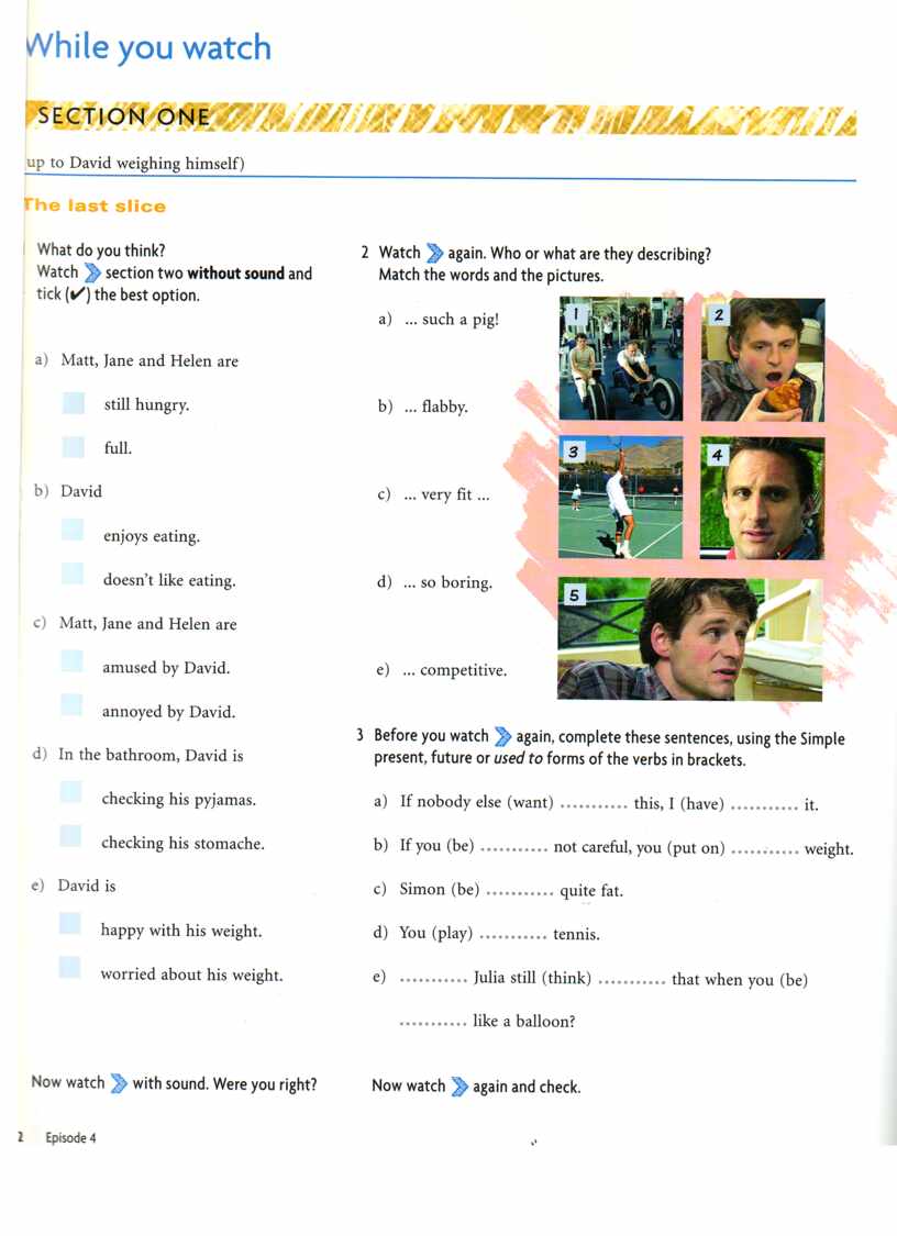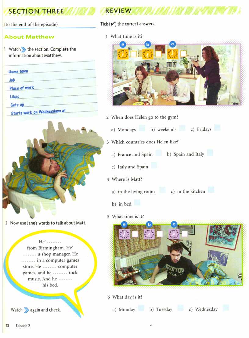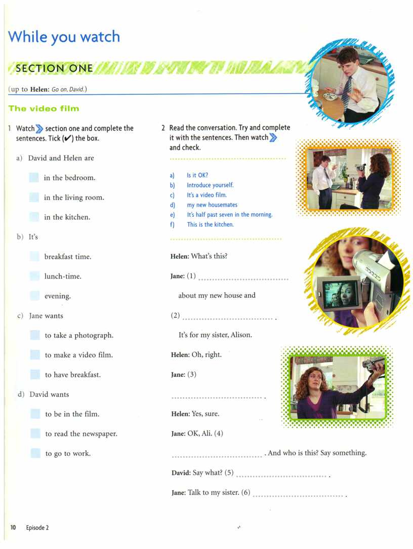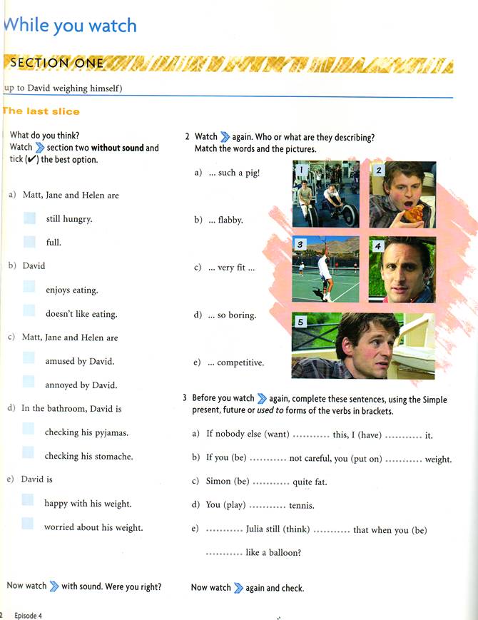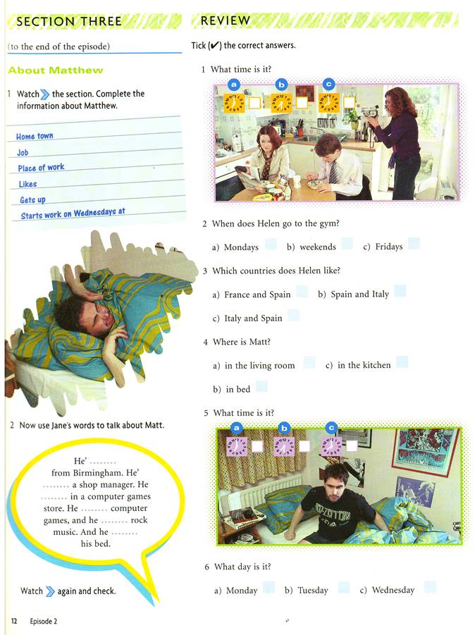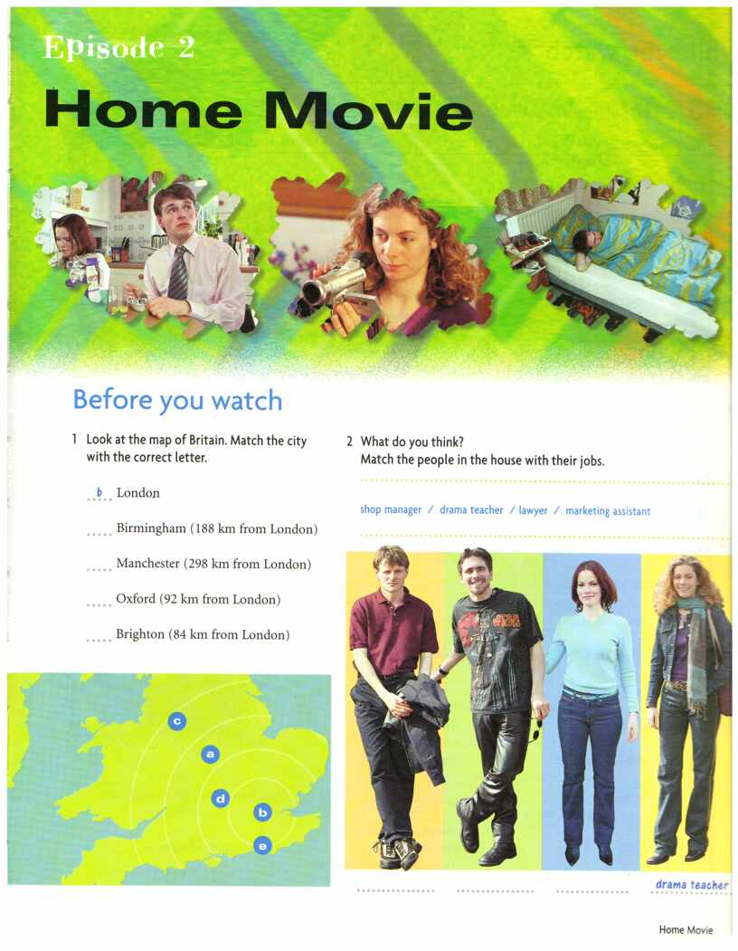 - эпизод из фильма видеокурса английского языка “New Headway Video. Веginner.” (Oxford English Video) под. названием “Home Movie”;