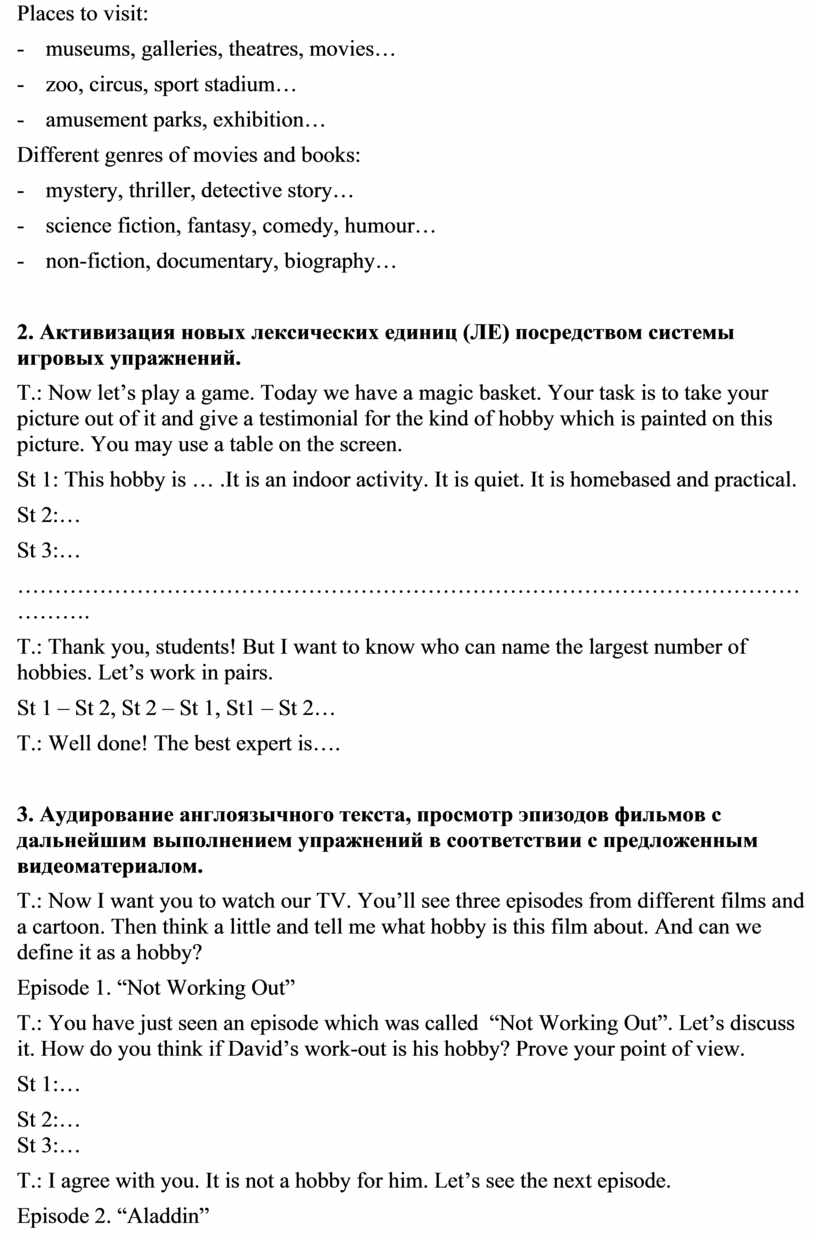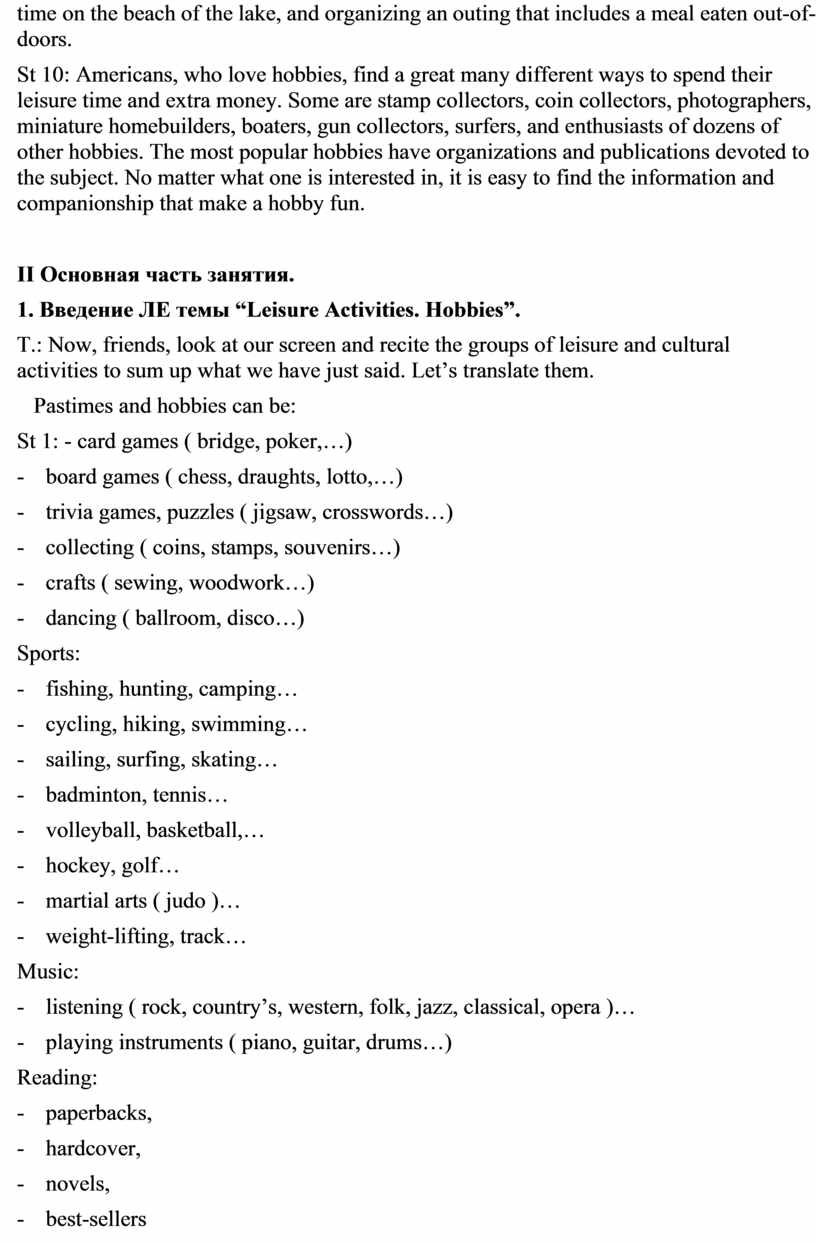 1. Введение ЛЕ темы “Leisure Activities. Hobbies”.