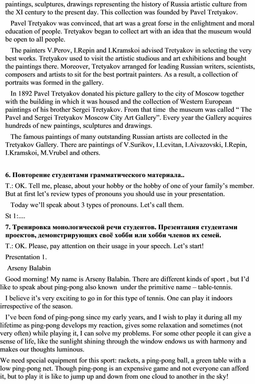 - раздаточныйматериал “The Tretyakov Gallery”;