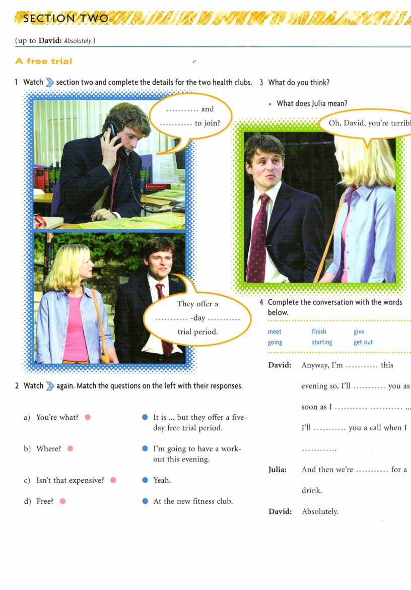 - эпизод из фильма видеокурса английского языка “New Headway Video. Pre-Intermediate.” (Oxford English Video) под. названием “Not Working Out” ;
