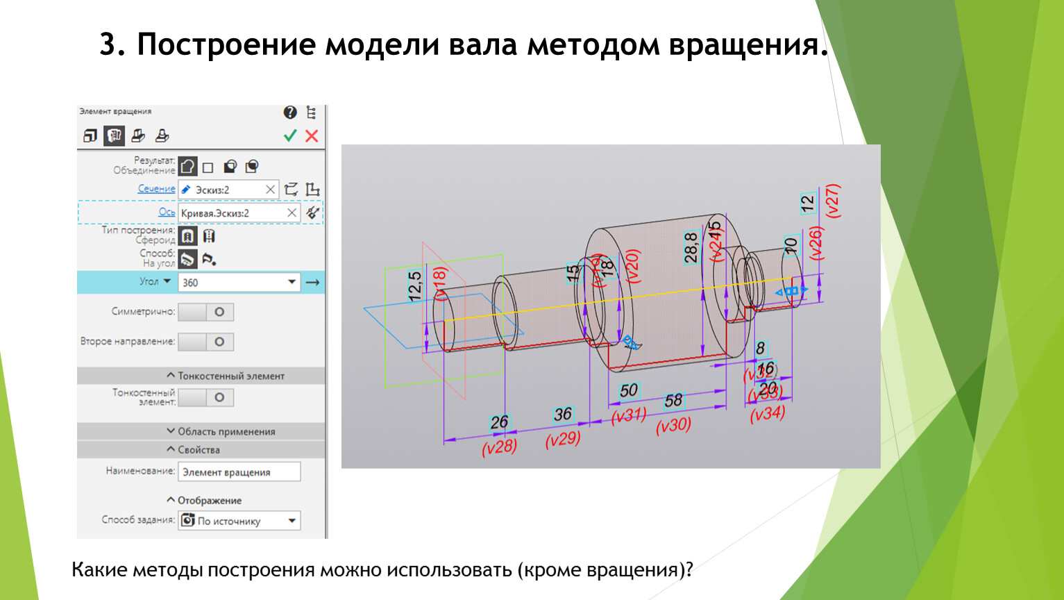 Построение модели вала методом вращения.