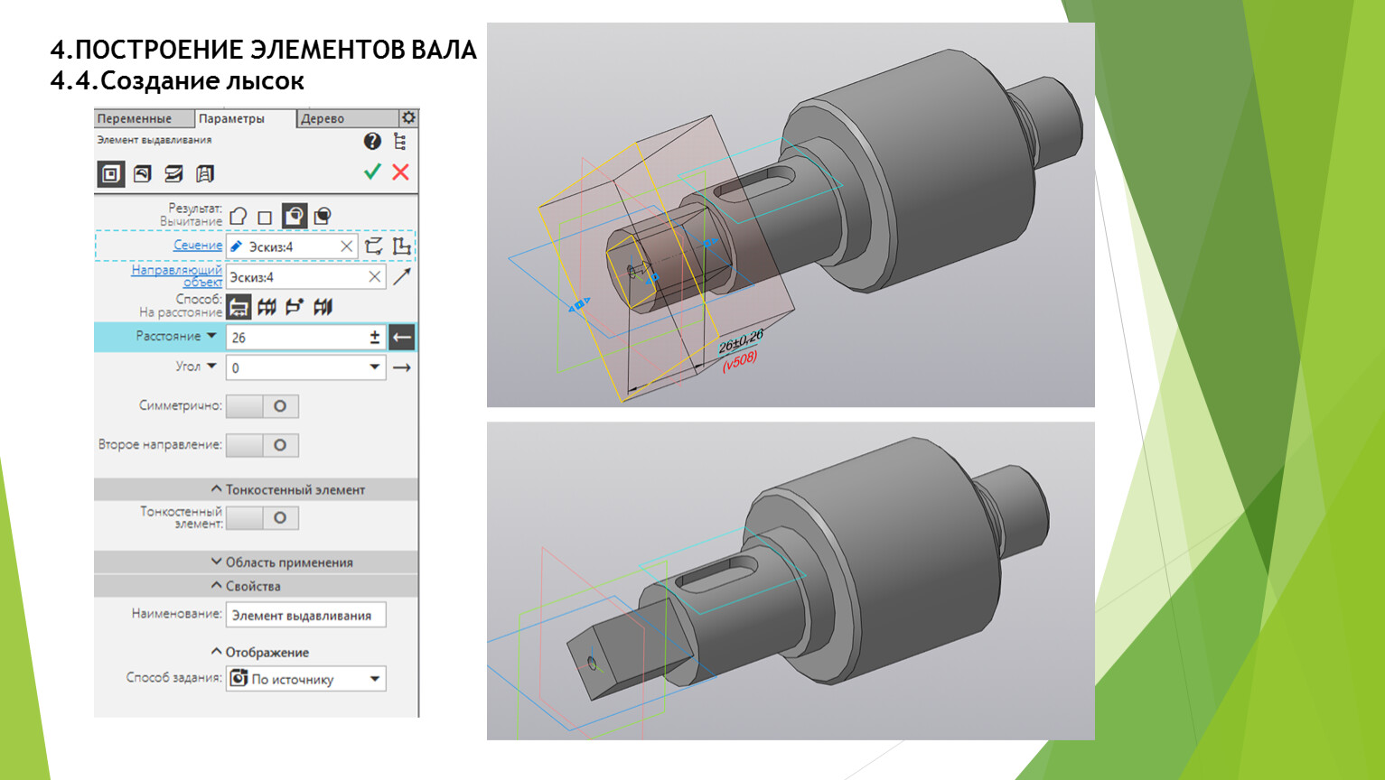 Построение элементов вала.