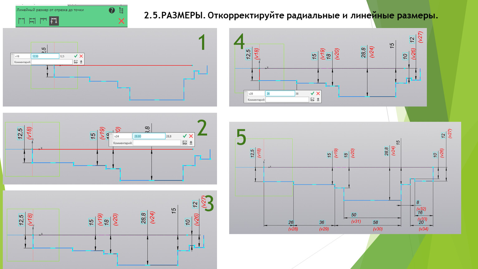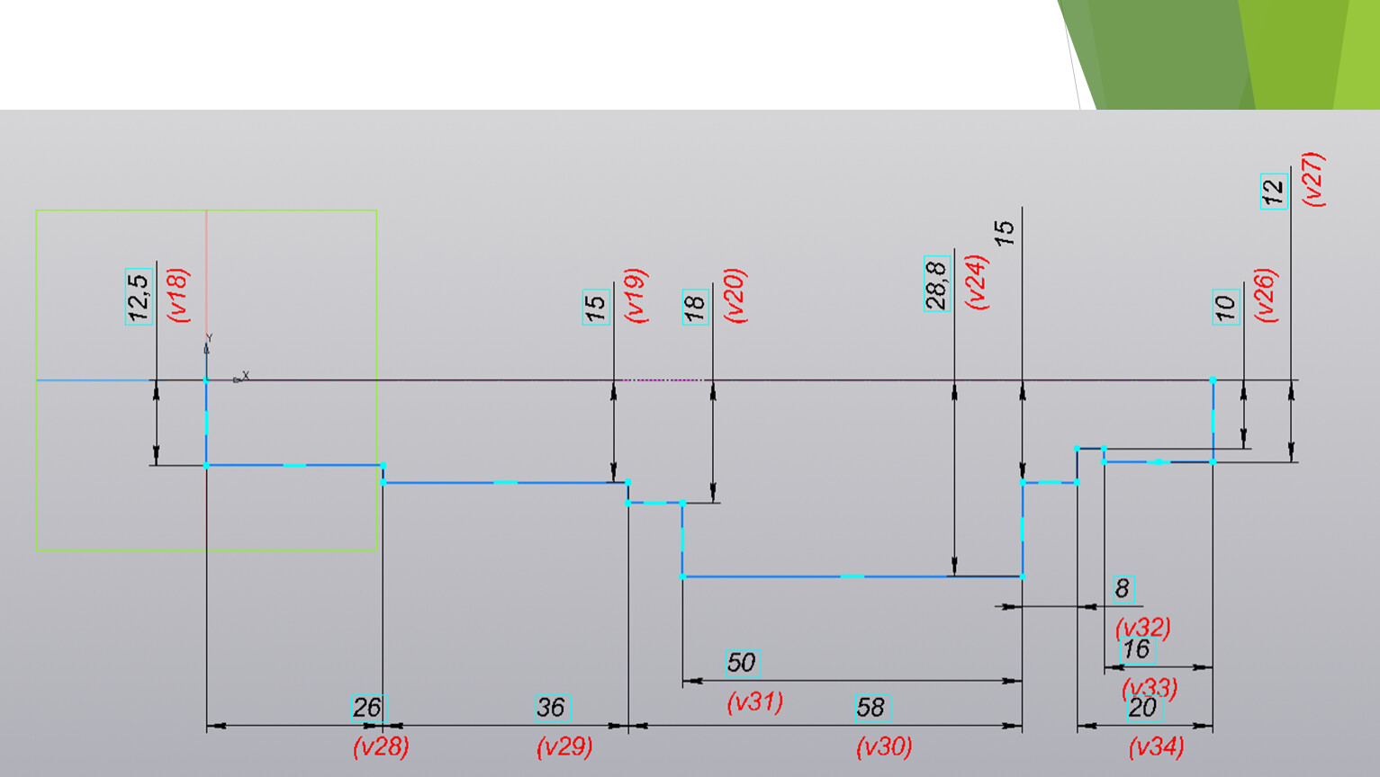 2.3.Из точки 0 начала координат эскиза постройте осевую линию длиной 148 мм