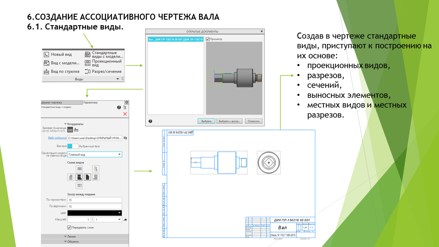 Создав в чертеже стандартные виды, приступают к построению на их основе: