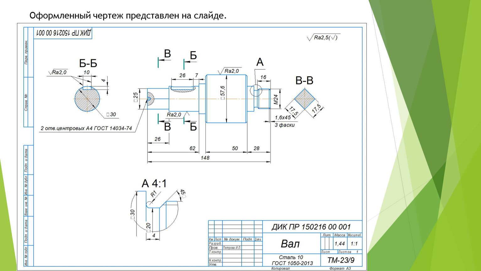 На поле чертежа изображение вала следует располагать параллельно основной надписи.