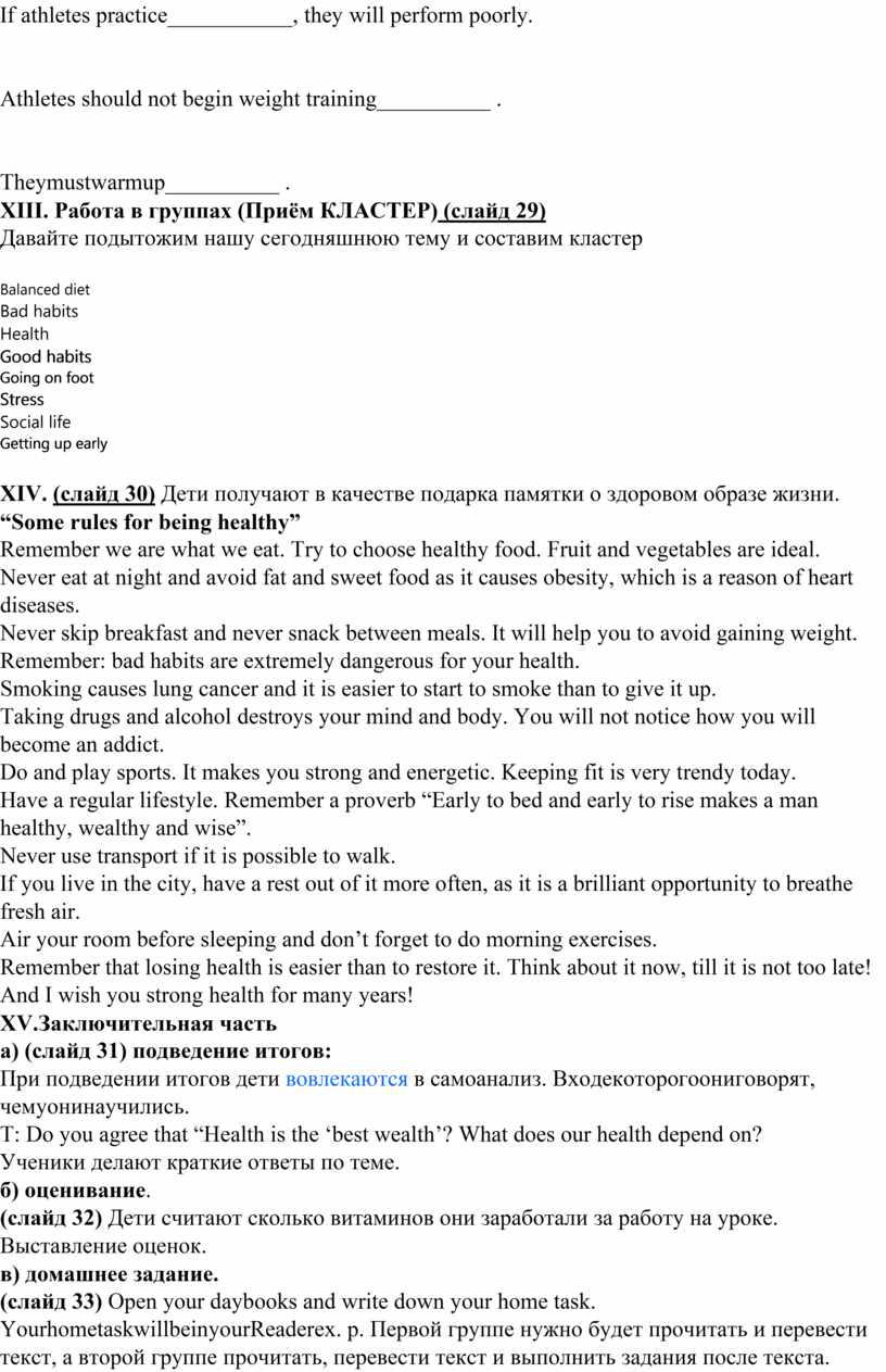 XIII. Работа в группах (Приём КЛАСТЕР) (слайд 29)