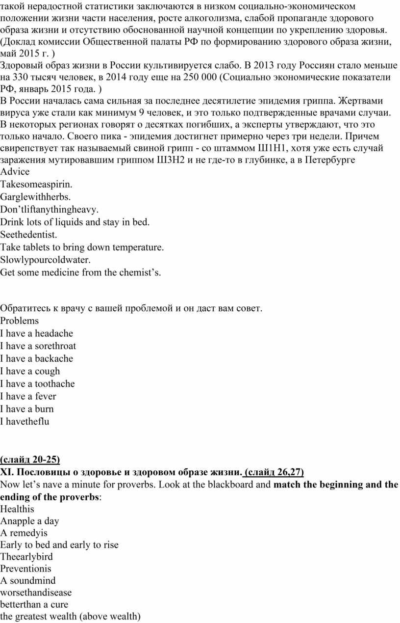 XI. Пословицы о здоровье и здоровом образе жизни. (слайд 26,27)