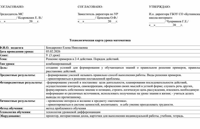 создание условий для формирования у обучающихся знаний о правильном решении примеров, правильной расстановке действий. |