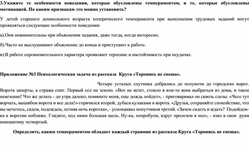 Определите, каким темпераментом обладает каждый странник из рассказа Круга «Торопись не спеша».
