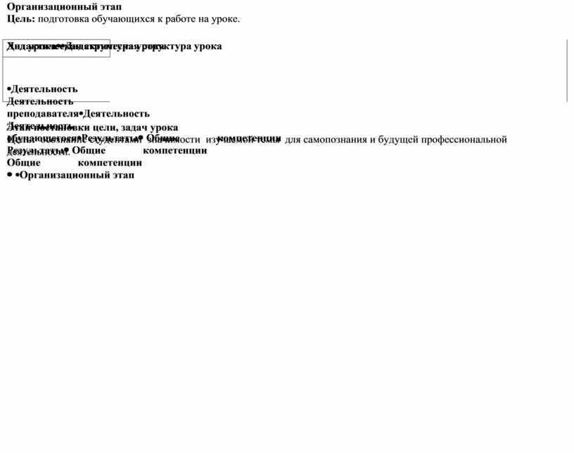 Дидактическая структура урока