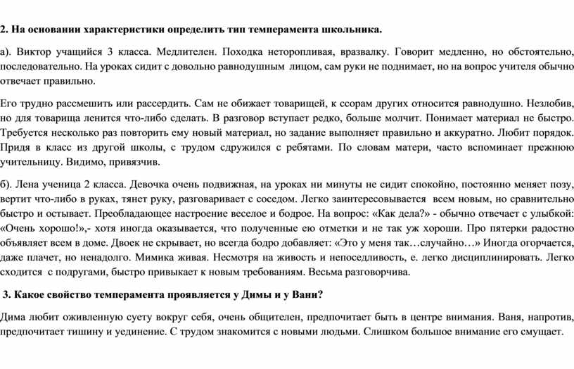 2.На основании характеристики определить тип темперамента школьника.