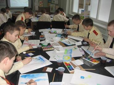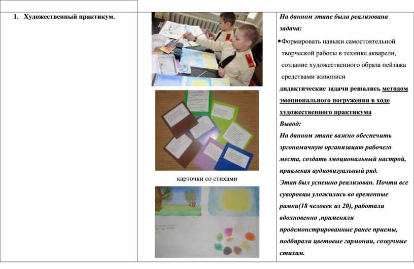 Вывод: Основные задачи были решены успешно. Упражнения этого этапа помогли суворовцам дать научную формулировку основных понятий и осознать их роль в создании пейзажа настроения.
